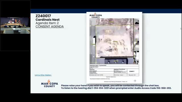 The Maricopa County Planning and Zoning Commission on Aug. 7 did not act on MCP 24005 (Fleetwood Storage) after staff announced the case was being continued to Aug. 21 because of a public‑notice error.