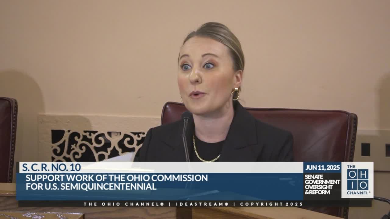 "It is my great honor to offer this resolution before the committee for all of us to have a small hand in celebrating this beautiful milestone for our state and nation," Senator Lane said in sponsor testimony. Senator Craig said the resolution "acknowledges and affirms Ohio dedication to commemorating the 250th anniversary of the founding of the United States."