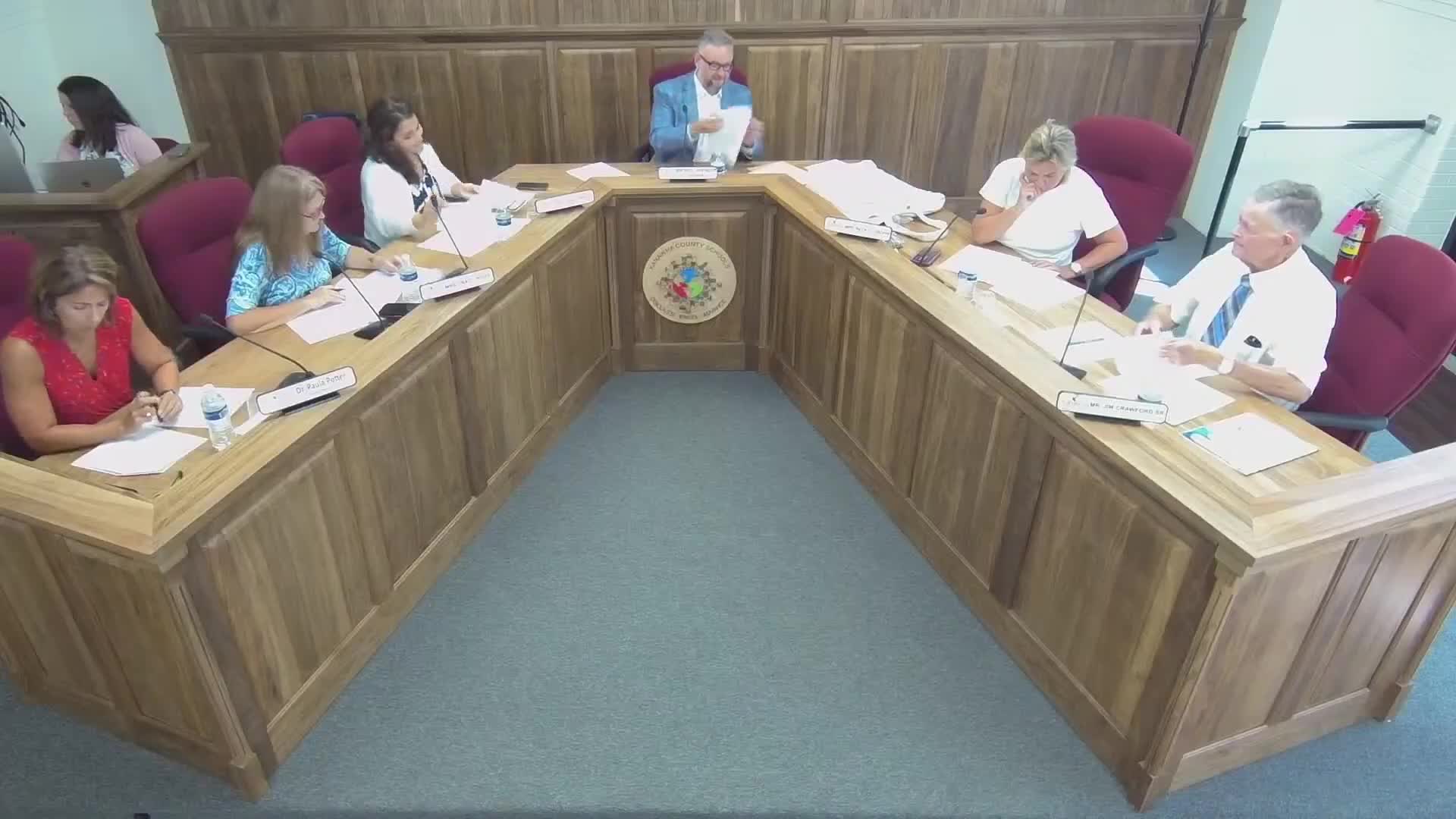 The Conroe County Board of Education approved an out-of-state travel request on Aug. 4. Missus White moved that “the board approve the out of state travel request as contained in Enclosure 20,” and the motion was seconded. The board voted on a roll call and recorded the motion as carried 5–0.