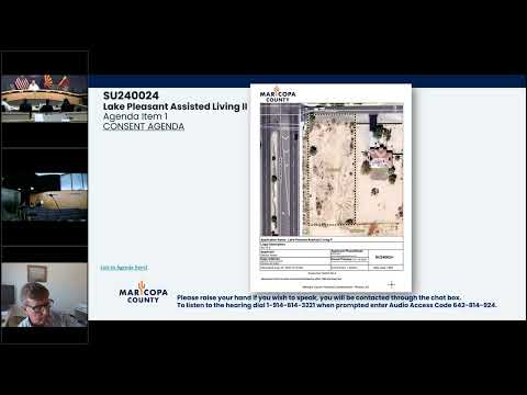 Votes at a glance: SU240024 (Lake Pleasant Assisted Living 2) — special use permit for a 10‑resident community in Rural‑43; recommended approval subject to conditions a–j; approved on consent 6‑0. MCP2500002 (Rock 4 Less) — military compatibility permit for aggregate rock sales; recommended approval subject to conditions a–i; approved on consent 6‑0. Z2500007 (Sierra Luna BESS facility) — industrial rezoning for a future battery energy storage site on ~18.5 acres; recommended approval subject to conditions a–j; approved on consent 6‑0. SU2500008 (212 Citrus RV Storage) — special use permit for RV/boat storage on ~4.5 acres in Rural‑43; recommended approval subject to conditions a–h; approved on consent 6‑0. Z2500014 (Arlington Propane) — IUPD rezoning for a proposed rail‑truck propane terminal on ~31.8 acres; recommended approval subject to conditions a–g; approved on consent 6‑0. KC25‑0011 (Valdosta/“Over to your” road) — rezoning to C2 CPD with modified condition D (pre‑annexation required before precise plan approval except for self‑storage; will‑serve letters accepted in lieu); recommended approval 6‑0.