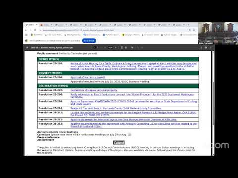 Lewis County commissioners approved renewal of a biennial Local Solid Waste Financial Assistance grant from the Washington State Department of Ecology on July 22 that will fund the county—ode-enforcement program.