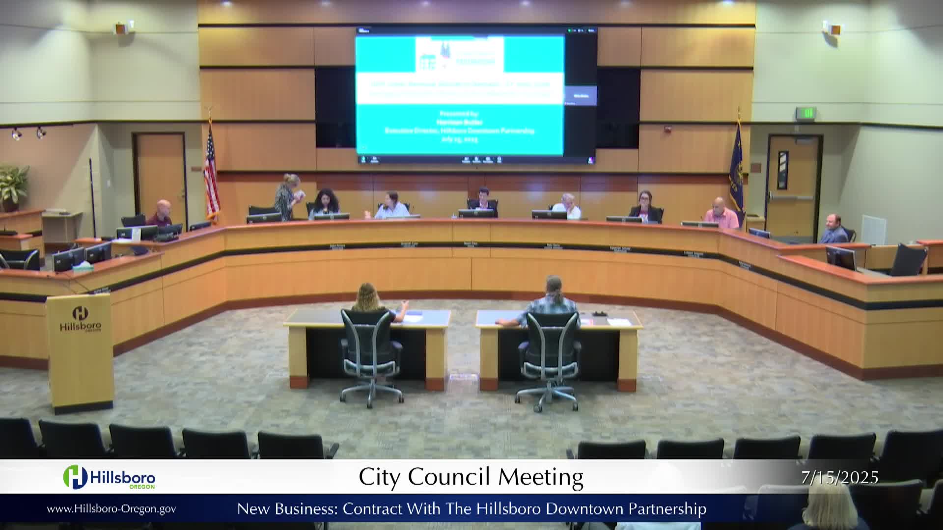 The Hillsboro City Council approved a one‑year contract worth $100,000 on July 15 with the Hillsboro Downtown Partnership (HDP) to support downtown beautification, placemaking and early efforts to expand business outreach beyond the historic Main Street core.