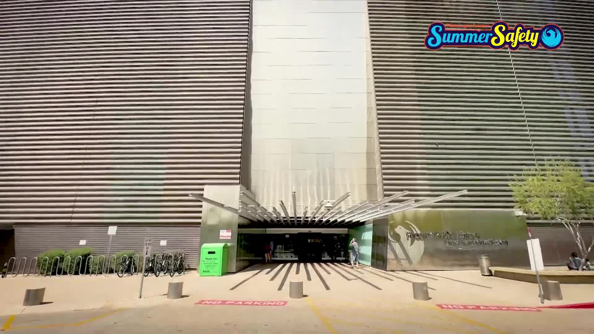 A library staff member announced that all 17 Phoenix Public Library locations will operate as designated cooling centers during regular open hours from May 1 through Sept. 30; three branches will offer extended evening hours and full services seven days a week.