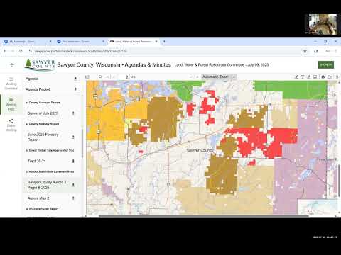 Aurora Sustainable Lands, the Wisconsin Department of Natural Resources and The Nature Conservancy briefed the Sawyer County Land, Water and Forest Resources Committee on a proposed working‑forest conservation easement affecting about 18,000 acres in the county and said the DNR plans to seek federal Forest Legacy funding this fall.