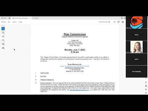 The Village of Cross Plains Plan Commission on July 7 postponed consideration of the preliminary plat for the Marchstone (Ingenuity) subdivision after a public hearing in which residents and watershed groups raised detailed concerns about stormwater, traffic, school impact and pesticide runoff.