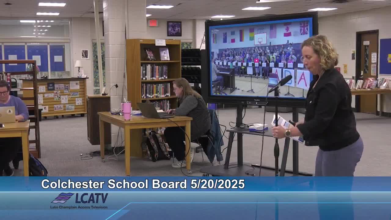 Jordan Burke, principal at Malletts Bay School, presented the school's 2023-24 annual report to the Colchester School District Board of Directors on May 20, highlighting updated explicit word-study instruction, a district-aligned math intervention "menu," strong YouthTruth survey results and preschool quality-improvement work under Vermont's STARS program.