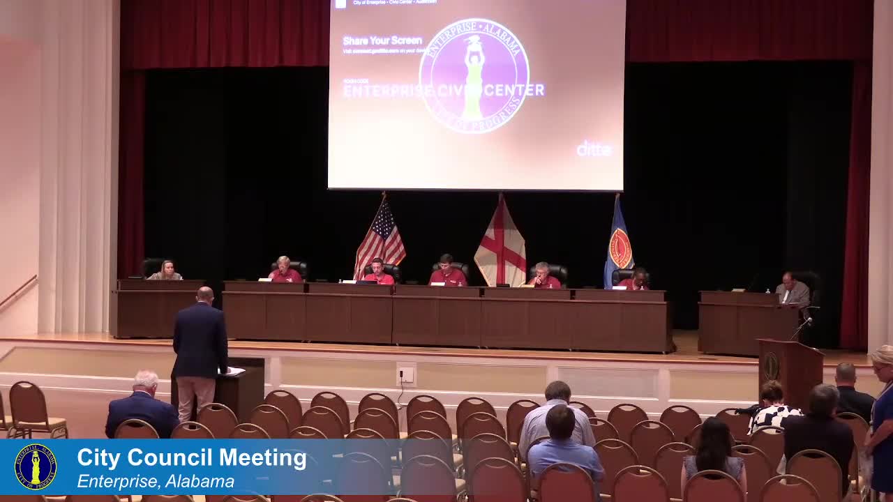 City staff told the Enterprise City Council it is on track with several third-quarter priorities, including park upgrades, City Hall finishing work, street resurfacing, Main Street lighting and studies for the library and street prioritization; staff flagged dependencies on ALDOT, grants and contractor schedules.