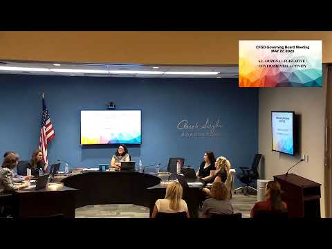 The consent agenda included routine minutes, vouchers, personnel actions, fundraising and textbook adoptions, and intergovernmental agreements. Among the items approved were an intergovernmental agreement for dual enrollment between CFSD and the Arizona Board of Regents, University of Arizona, and two contracted awards: $501,266.71 to General Acrylics for replacement of tennis and basketball courts at Esparo Canyon Middle School and $112,861 to Capcon for exterior fence, eaves and canopy painting at Canyon View Elementary School.