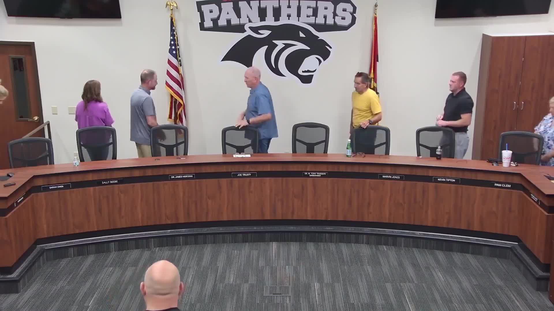The board announced it would "move into executive session to consider the employment, appointment, promotion, demotion, or resignation of employees and to discuss real property." Those discussions took place behind closed doors; the board later took a public vote on personnel.