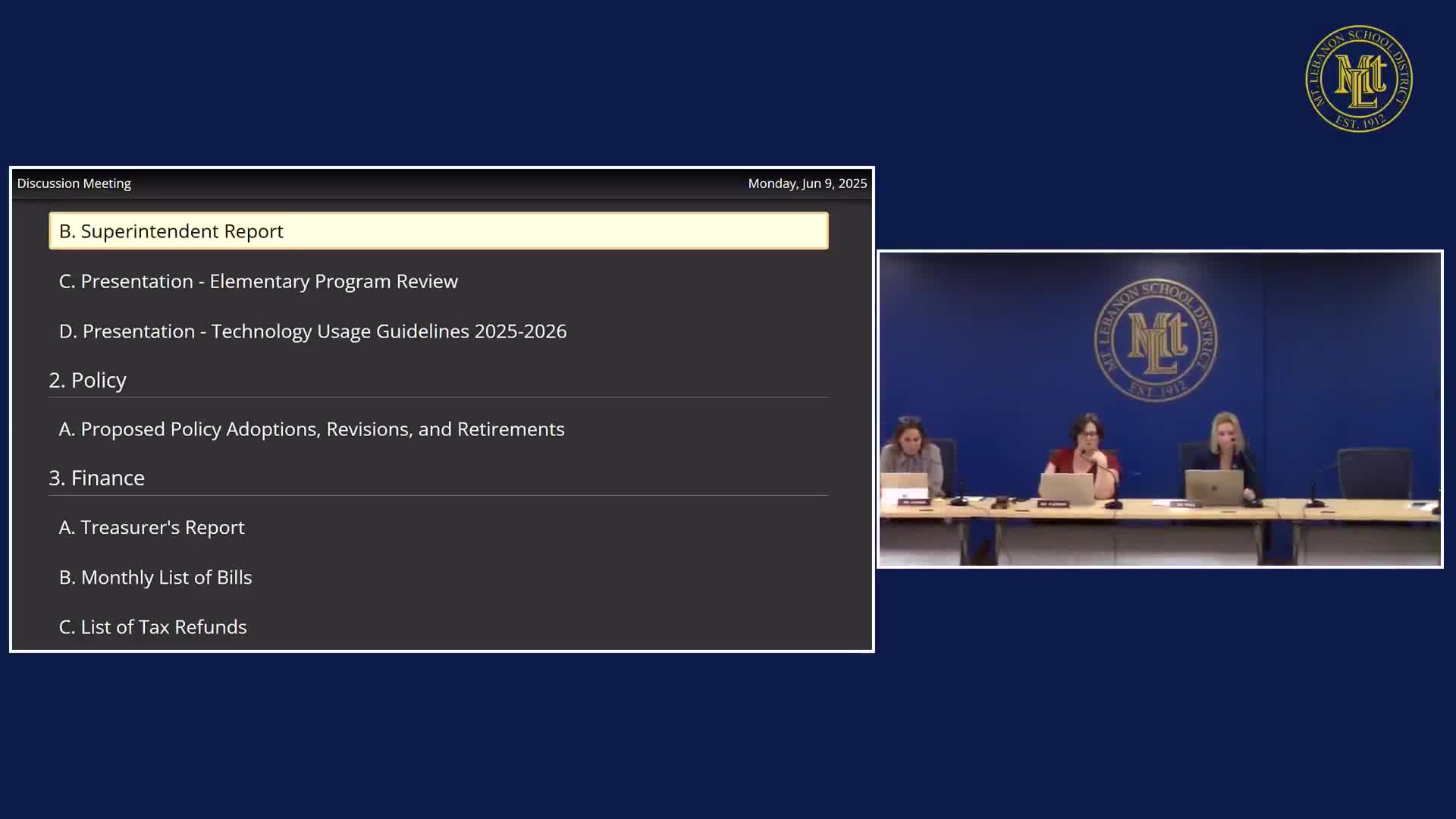 Mount Lebanon School District administrators unveiled draft technology‑usage guidelines and an implementation plan at the June 9 board meeting that would prohibit personal electronic devices during the school day in K–5, restrict them in grades 6–8 and allow more limited, supervised use in high school while adding guidance on generative artificial intelligence.