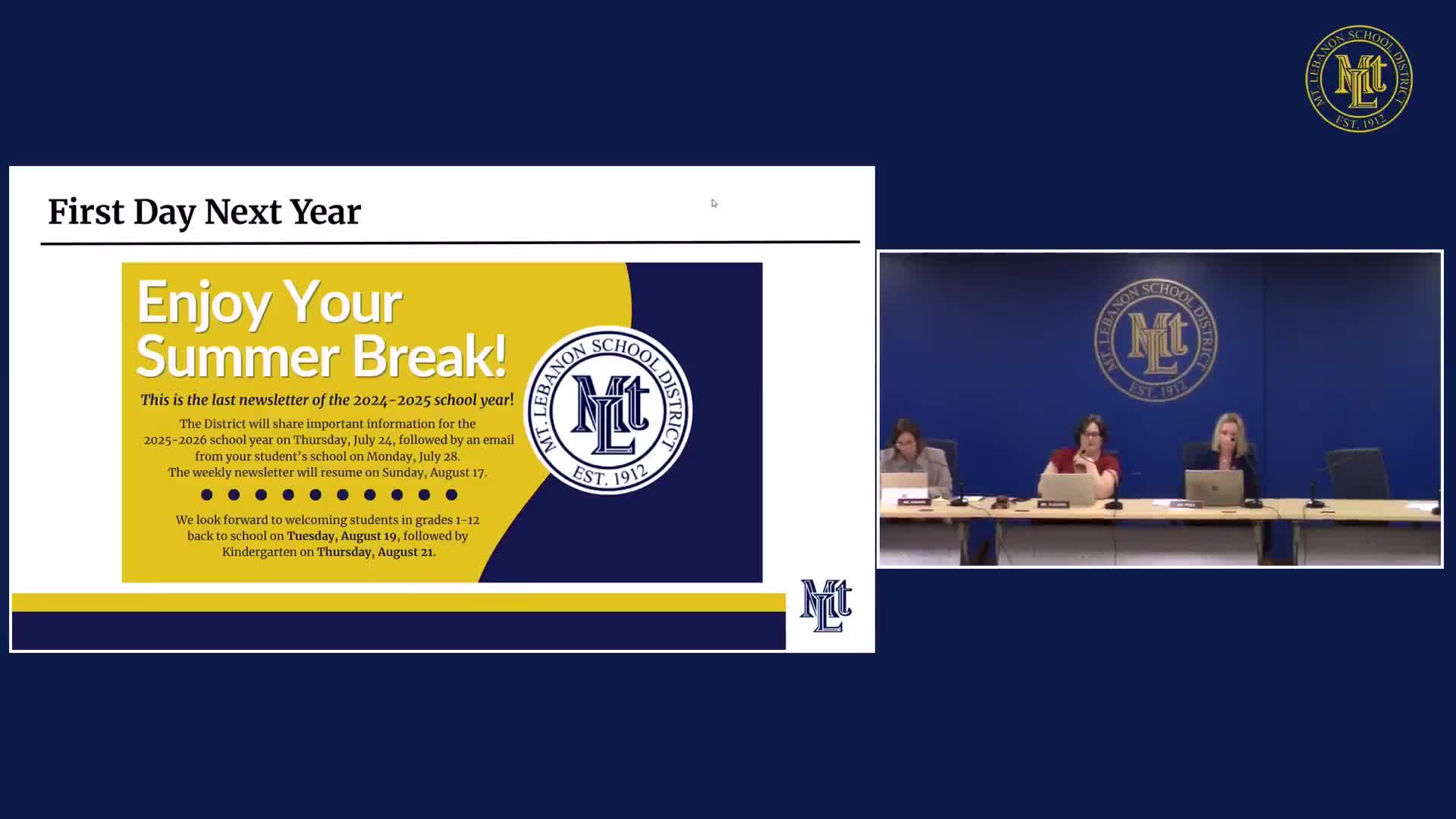 Mount Lebanon School District staff presented findings from a year‑long elementary program review at the June 9 Mount Lebanon Board of School Directors meeting, recommending a six‑year districtwide curriculum review cycle, standardized written curriculum access and new implementation steps for instruction and interventions.