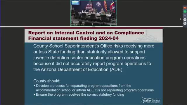 The Arizona Auditor General reported June 9, 2025, that the Maricopa County School Superintendent's Office inaccurately reported juvenile detention education program operations to the Arizona Department of Education (ADE), with potential funding implications.