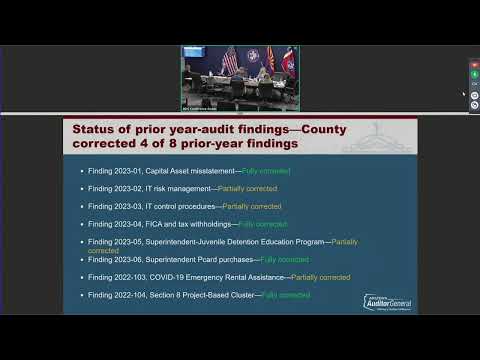 Michelle Walters, audit manager, told the Board of Supervisors that for 4 of 9 subawards tested the department did not report organization names, subaward amounts or terms. Walters recommended immediate reporting on the FFATA subaward reporting system, adherence to county grant policies for reporting subaward actions equaling or exceeding $30,000, and updates to the county's grant-tracking system to include grants and amendments from all departments.