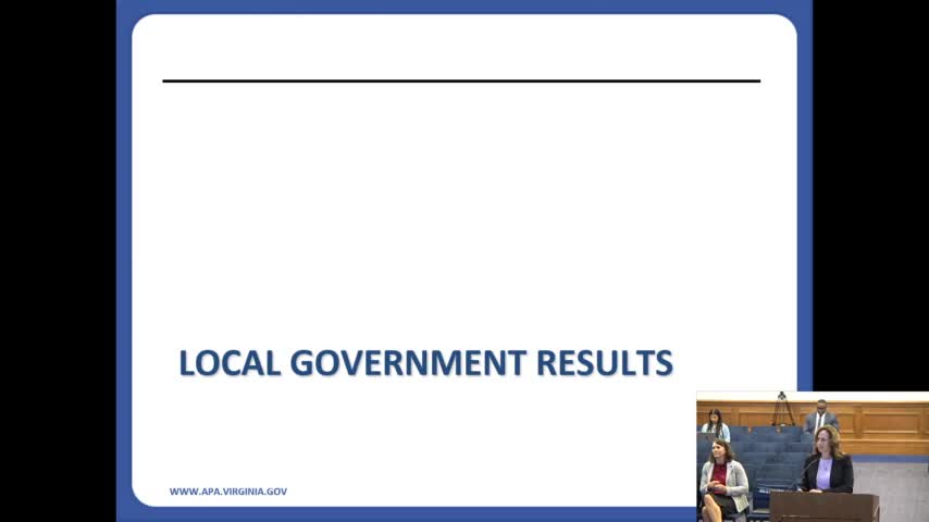 Henshaw said the APA published a draft comparative report on Feb. 15 and the final in April, and that 30 localities remained missing as of the final draft. She described common reasons for late submissions including accounting vacancies and difficulty procuring auditors.