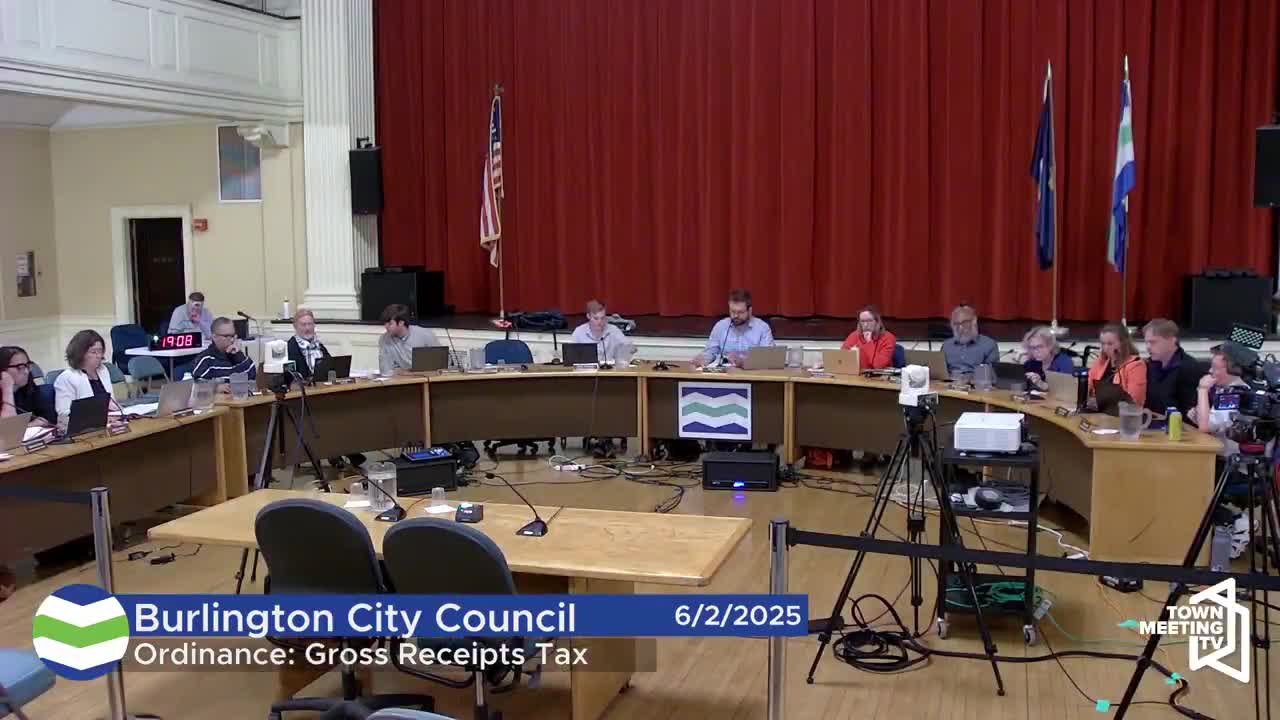The Burlington City Council voted 9–3 on June 9 to approve a revised gross-receipts ordinance that keeps a 2.5% rate on certain grocery and restaurant receipts in place while allowing the administration and council additional time to evaluate alternatives tied to pending state-level education funding changes.
