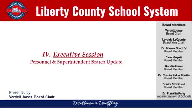 Liberty County board returns to open session; superintendent search ongoing, no personnel recommended