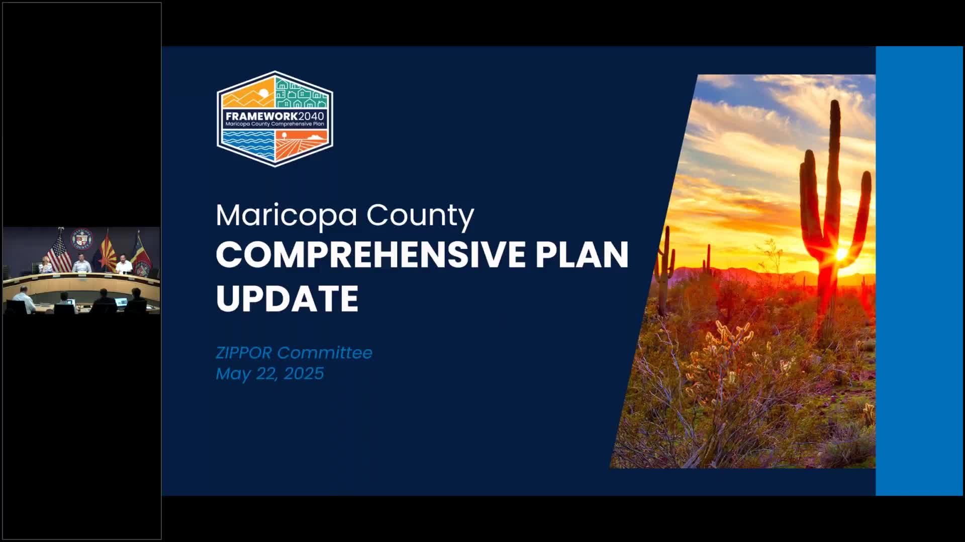 Adam Cannon, planning and development staff for Maricopa County, told the Planning and Zoning Commission that the county has completed two rounds of public participation for its comprehensive-plan update and expects a draft plan by late summer or early fall.
