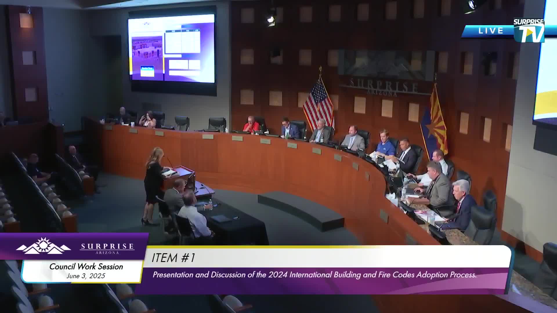 City staff told the Surprise City Council at its June 3 work session that the city plans to begin a transition from the 2018 International Codes to the 2024 editions and will bring a proposed local amendment package to the council for adoption in December.
