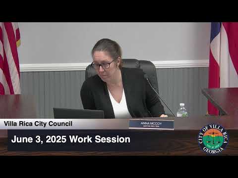 City planning staff presented a text amendment to the Villa Rica City Council proposing tighter zoning controls for smoke and vape retailers, including expanding separation requirements and adding definitions for vape products and dispensaries.