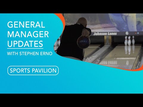 In a community video, Sports Pavilion manager Gary outlined a new Saturday night resident-only bowling league starting in September, scheduled tournaments, a planned Lizard Acres pub remodel this summer, and proposed bowling-equipment upgrades pending governing-board approval.