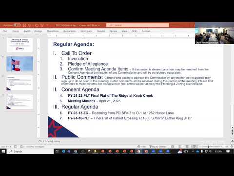 The matter is routine for subdivisions moving from preliminary to final plat unless commissioners or members of the public request the item be pulled for discussion. Bridal Chandler, planning and development director, said the plat is on consent because it matches the previously approved preliminary plat and noted commissioners may still pull it when they vote.
