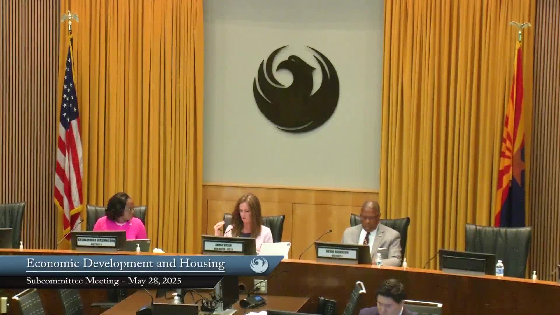 The City of Phoenix Economic Development and Housing Subcommittee unanimously recommended approval of the city’s fiscal year 2025–2030 public art plan and its $24,407,060 budget, directing staff to send the plan to the full City Council for final approval and posting on the city website.