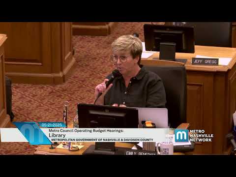 Nashville Public Library Director Luke told the Metro Council Budget Committee the library is asking for new branch staff, systemwide security funding and full annual collection funding as part of its FY26 request, citing rising circulation and continued pressure from facility closures and staffing shortages.