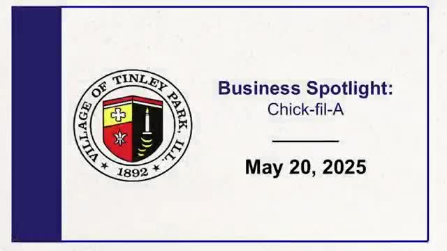 Kevin Skerran, operator of the new Chick‑fil‑A in Tinley Park, introduced the restaurant at a Tinley Park Village Board meeting and described community partnerships, recent donations and programs including a $25,000 gift to the Greater Chicago Food Depository and a shared‑food program.