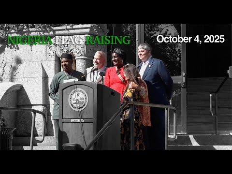 Mayor Daniel P. Rourke read a proclamation declaring Oct. 4, 2025, Nigeria Independence Day in Lowell and joined community leaders and state and city officials for a flag-raising and reception honoring the Nigerian American community.