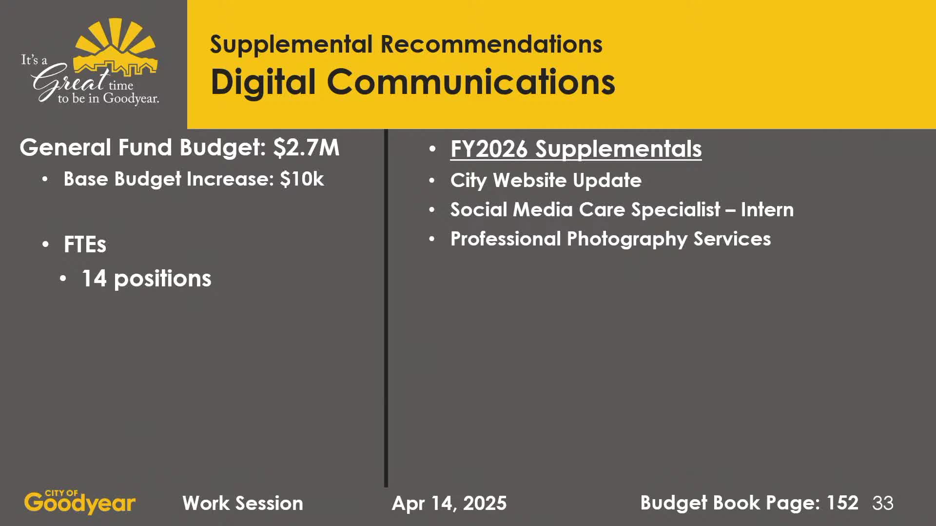 City officials told the council April 14 the recommended FY26 budget includes a major increase in public‑safety staffing and facility improvements intended to match the city's rapid growth.
