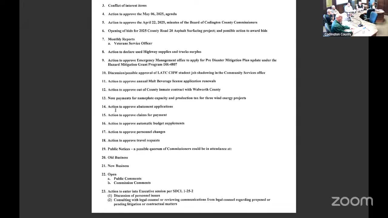 Codington County commissioners discussed two technology items in new business: replacement servers for county systems and encrypted email for an office, and they heard that state judicial partners have proposed upgrades to the small courtroom’s audio-visual system.