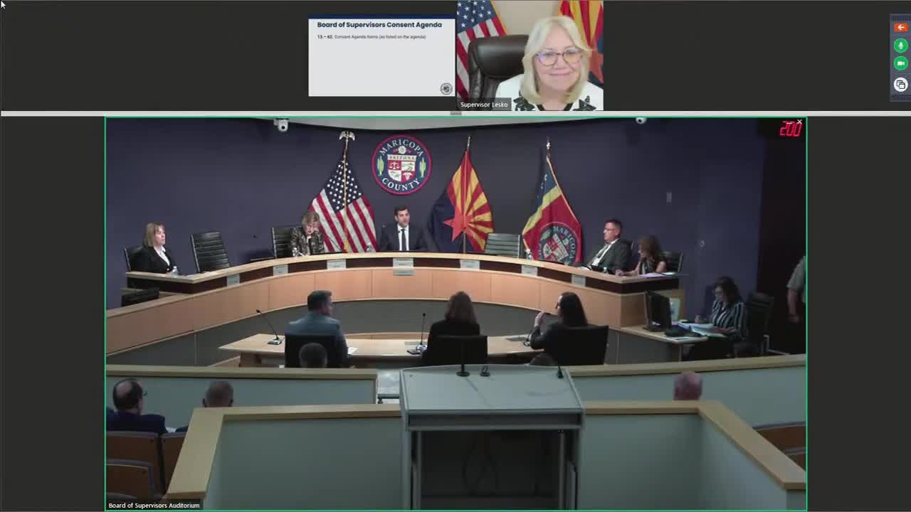 Maricopa CountyBoard of Supervisors on May 7 approved acceptance of a U.S. Department of Energy reimbursement grant to install electric vehicle charging stations at county facilities, saying the project is already funded in the county capital plan and that chargers will initially serve only county fleet vehicles.