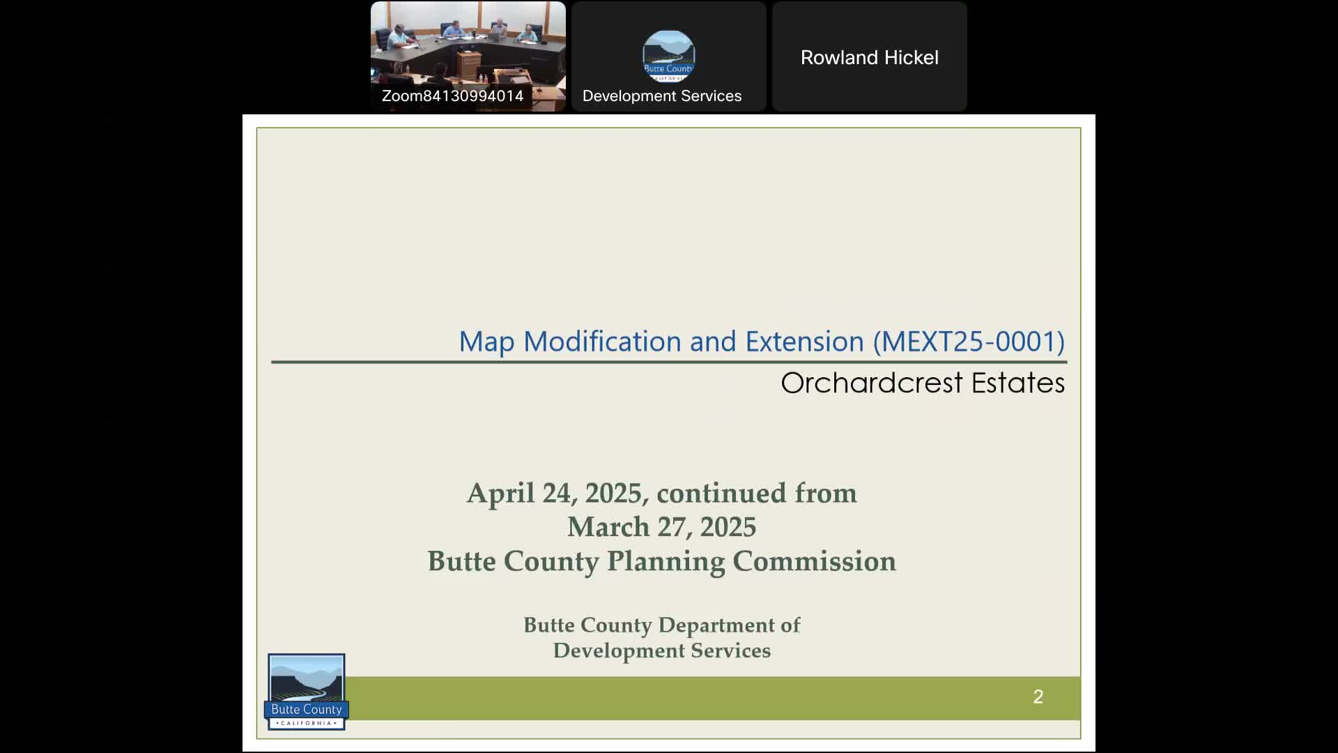 The Butte County Planning Commission on April 24 approved a map modification to allow phased recording of the Orchard Crest Estates subdivision and voted to extend the tentative map’s expiration after a public hearing in which neighbors raised concerns about drainage, road access and an improperly placed retaining wall.