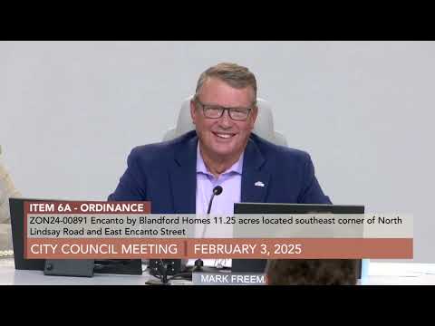 The Mesa City Council on Feb. 3 approved annexation case 23-01004 and associated zoning 23-01003 for a project called Carmelo by Blandford Homes, a proposal covering just over 30 acres. The vote advanced both annexation and zoning after public commenters asked the council to weigh water-supply and broader infrastructure impacts.