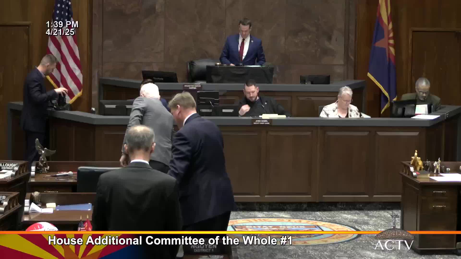 The Arizona House on April 17, 2025, received Committee-of-the-Whole reports and advanced multiple Senate bills. Many measures were moved together through Committee of the Whole and adopted on the floor. Below are the bills noted in the transcript, the committee recommendation or amendment status, and the outcome recorded in the legislative proceeding excerpt.