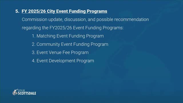 The Scottsdale Tourism Development Commission recommended revisions to the city’s event funding programs, adding charitable requirements, a July–September seasonality period, and clearer eligibility and venue‑use rules.