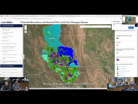 "The purpose of today's hearing is to update the Board of Supervisors on recommendations from the Local Area Plan Advisory Committee that are specific to land use or mapping changes," said Miriah Turner, Lake County community development director, introducing the presentation and the web-based map viewer used to show parcel-level recommendations.