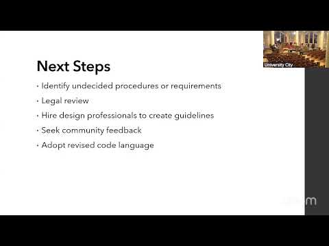 John Wagner, Director of Planning and Development, and Noah Chapin, City Planner, presented a proposal to establish a standalone Architectural Review Board for University City and to create associated zoning code language to govern when and how projects would be reviewed.