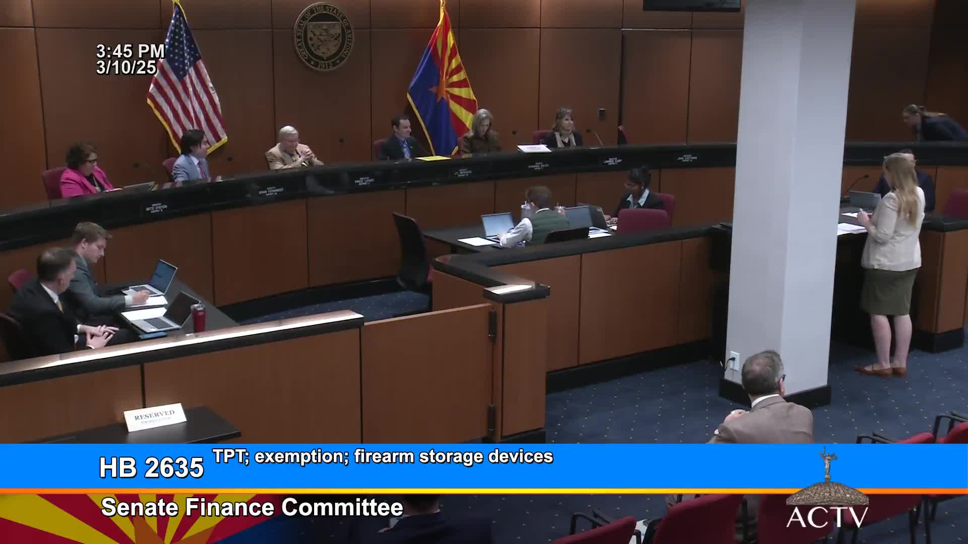 The Senate Ways and Means Committee voted 6–1 on March 7 to return House Bill 2635 with a do‑pass recommendation. The bill would exempt purchases of firearm storage devices from the state transaction privilege and use tax.