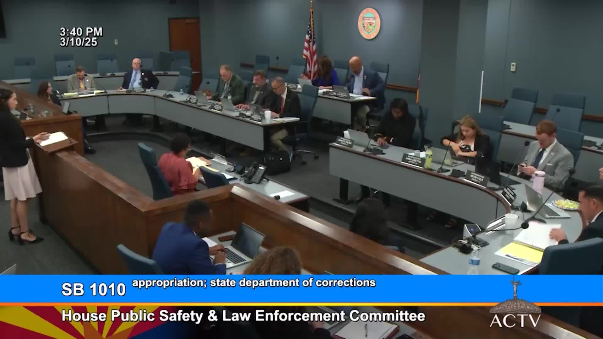 The Arizona House Committee on Public Safety and Law Enforcement voted to give Senate Bill 1010 a due-pass recommendation, endorsing a $103,300,000 FY2026 appropriation to the Arizona Department of Corrections, Rehabilitation and Reentry (ADCR) to fund 20% raises for correctional officers and 10% raises for other DOC employees.