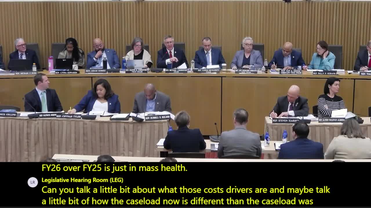 Administration witnesses told the Joint Committee on Ways and Means that MassHealth enrollment and acuity are major drivers of projected FY 2026 spending growth and that the program’s higher pharmacy and MCO costs are central budget pressures.
