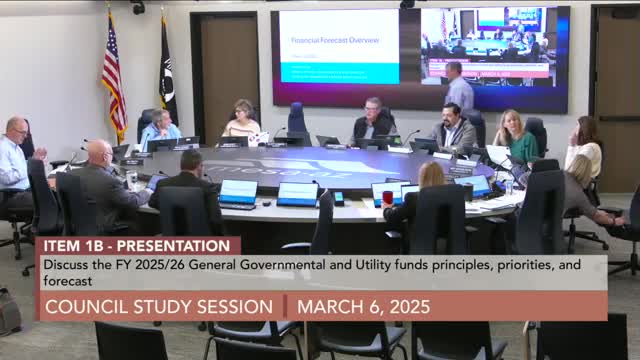 Mesa staff told the City Council on March 6 that a multi‑year forecast of the general fund and utility funds shows revenue pressures from the loss of a residential rental sales tax and slower sales‑tax growth, while spending pressures — most notably a public‑safety salary benchmark — are pushing reserves toward policy minimums in coming years.