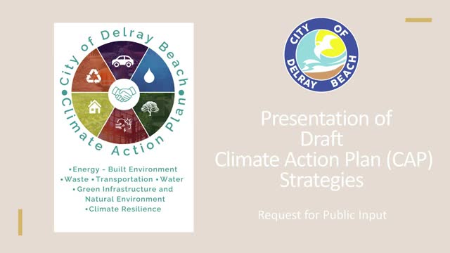 Ken Edwards, sustainability officer for the City of Delray Beach, presented draft strategies Friday as the city advances a climate action plan and invited community feedback via a QR code link to a public comment page.