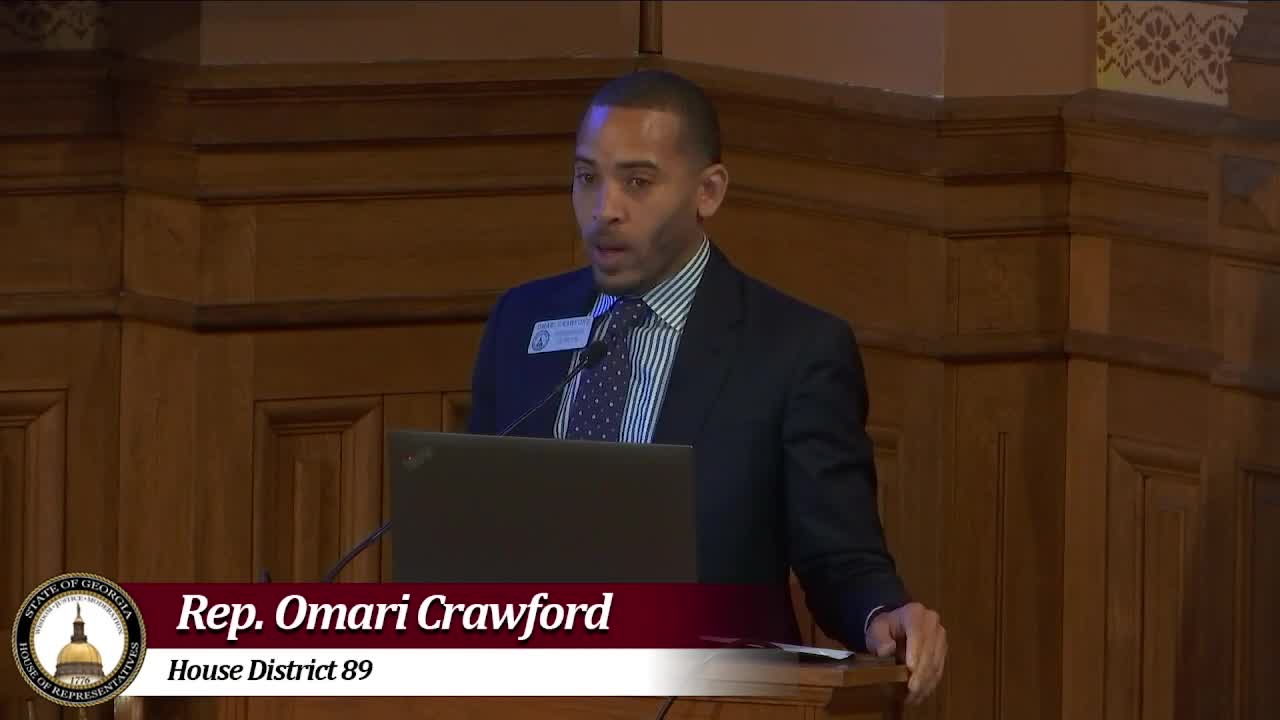 Representative Robert Crawford presented a resolution asking the General Assembly to compensate Cedric Moore for wrongful imprisonment after his conviction was overturned following modern DNA testing.