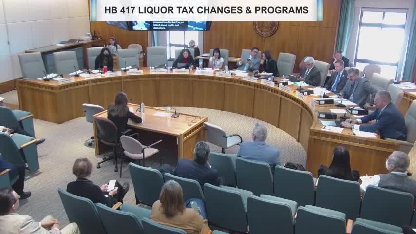 Representative Lara Cadena told the House Taxation & Revenue Committee that House Bill 4-17 would freeze the current wholesale liquor excise tax and create a new 6% retail surtax whose net proceeds would fund alcohol-harms prevention and treatment programs and a tribal-directed grant council.