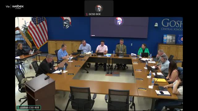 The Goshen Central School District Board of Education approved a number of routine and contract items at its June 2, 2025 meeting. Votes were taken primarily on consent-agenda items and individual motions; the record shows affirmative voice votes for each passed motion.