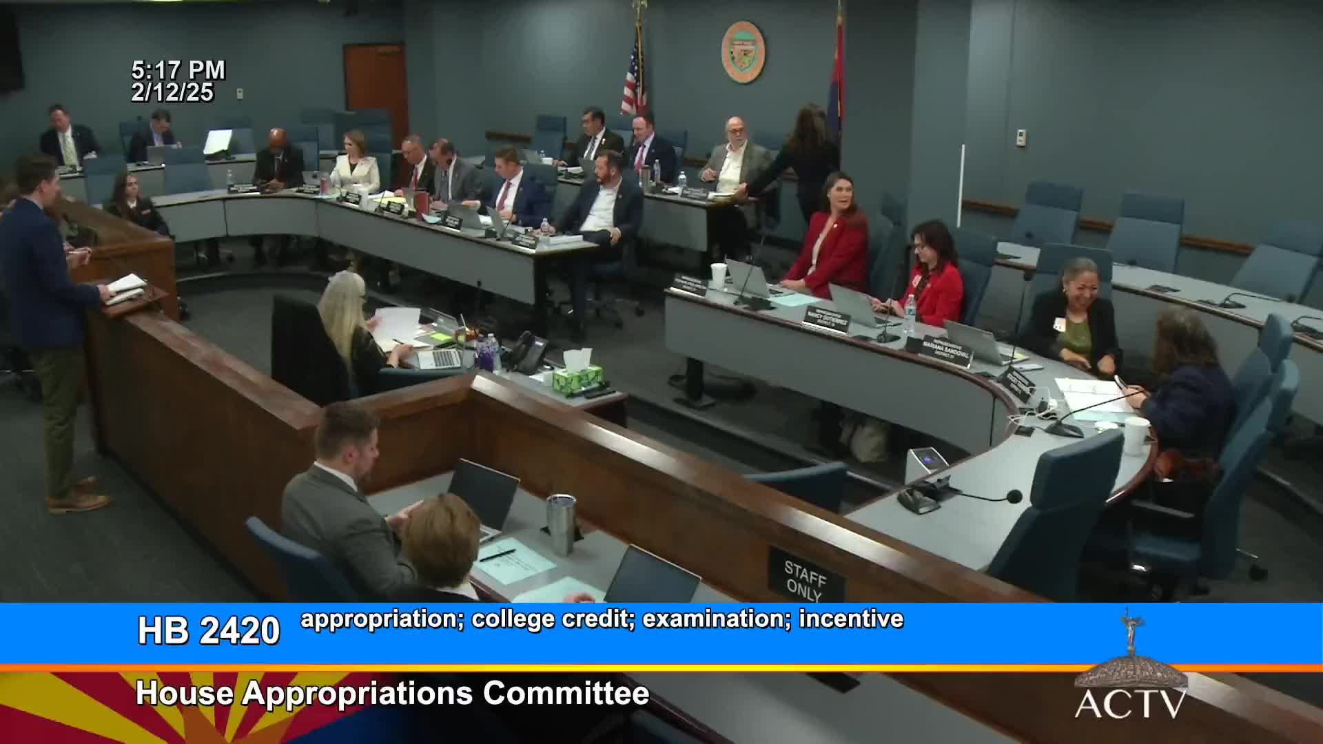 Feb. 12, 2025 — The Arizona House Appropriations Committee on Feb. 12 considered House Bill 2420, a proposal to appropriate $4,214,700 from the state general fund in FY2026 for the College Credit by Examination Incentive Program (CCEIP). The committee voted the bill down after extended debate about program equity and whether the incentive primarily benefits teachers and students in certain districts and schools.