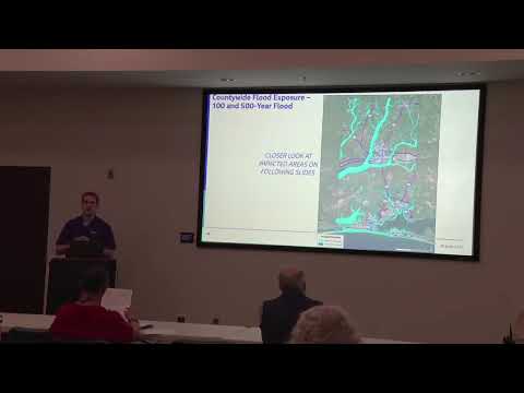 Tanya Gallagher, project manager for Jacobs, and county officials presented preliminary results of a countywide vulnerability assessment at a Feb. 2025 public meeting, saying the analysis found that fewer than 10% of the assets the team reviewed are exposed to the 1% annual (100‑year) flood but that localized hotspots pose substantial operational and community risks.