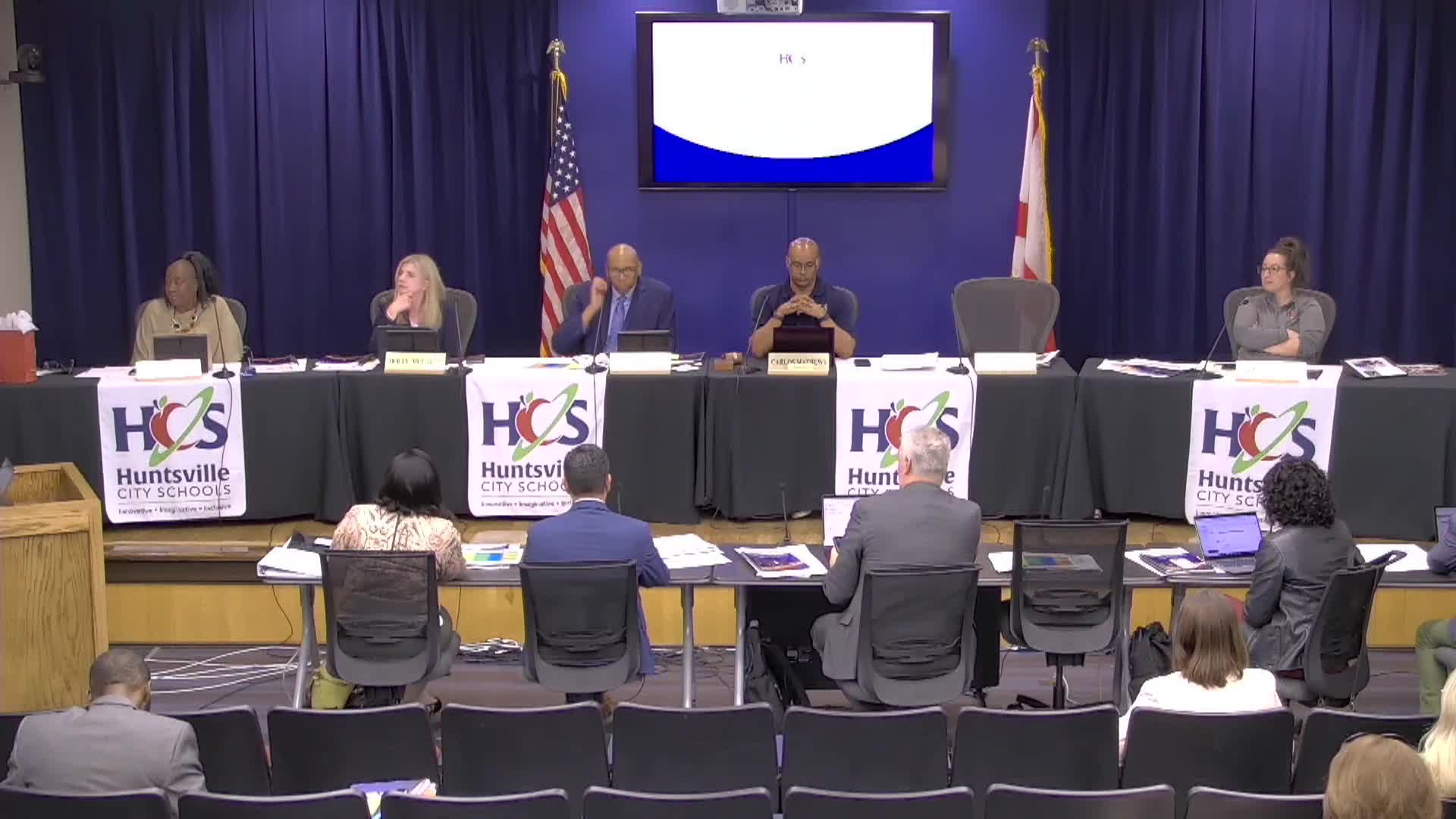 Huntsville City Schools presented an owner–architect agreement for replacement of two competition auxiliary-gym roofs at Huntsville High, noting the roofs are out of warranty and in poor condition.