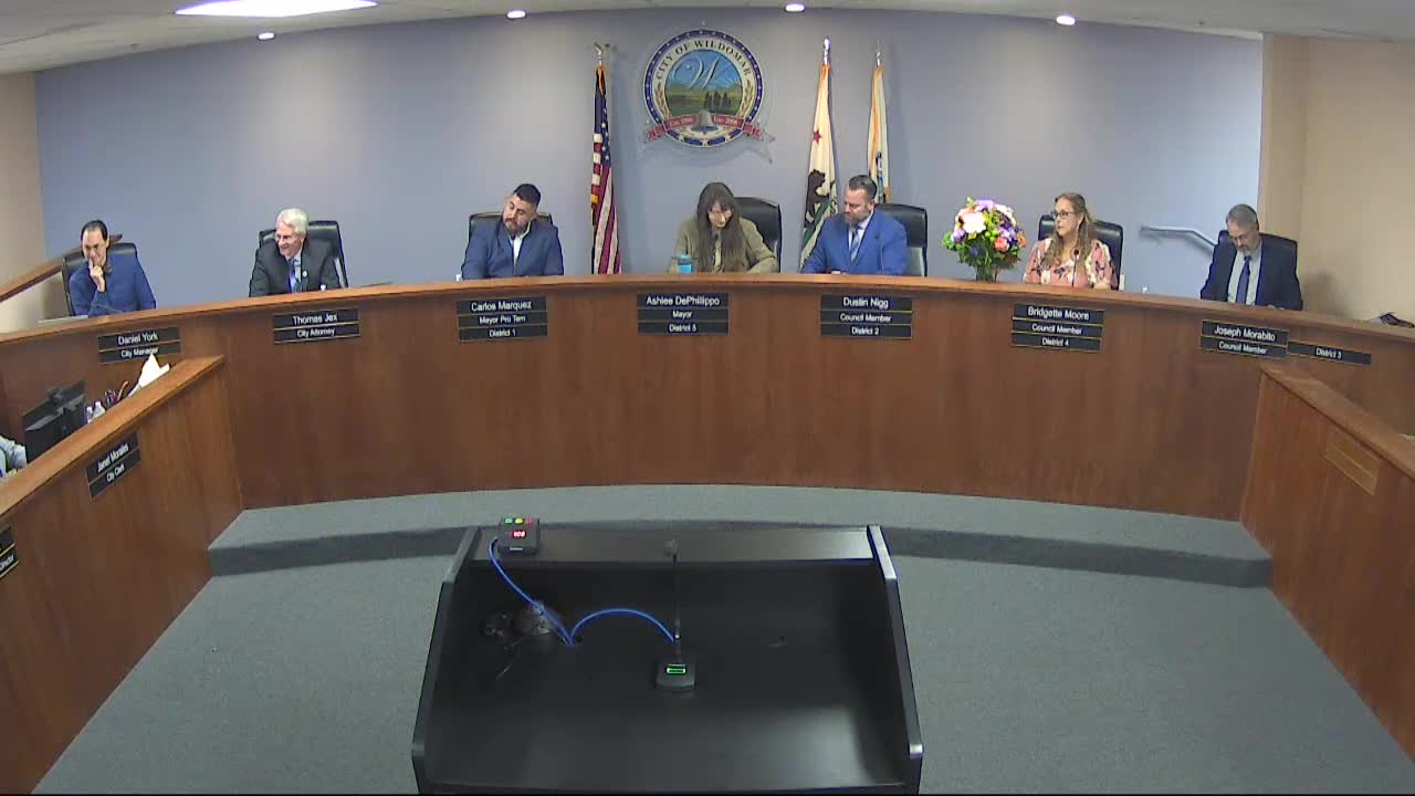 The Wildomar Cemetery District met immediately following the City Council session. Jeanette Morales, the city clerk, read a declaration under Government Code section 54952.3 noting trustees would receive no compensation for the meeting.